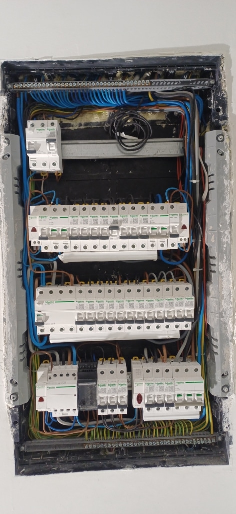 Σε ένα διαμέρισμα κατασκευασμένο το 1937, προχωρήσαμε σε ριζική ανακαίνιση της ηλεκτρολογικής εγκατάστασης, αντικαθιστώντας το παλιό δίκτυο με σύγχρονες λύσεις που εγγυώνται ασφάλεια, λειτουργικότητα και άνεση.